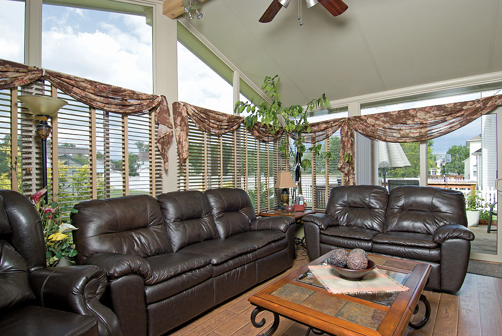 Our Sunroom gives you a light filled space you can use every day of the year. Homeowners with Sunrooms especially enjoy the view of winter in a cozy sunroom. That’s because adding a Sunroom gives you a front row seat for the Winter Wonderland – without having to tread through snow, ice and wind. The cold won’t bother you either, because you control the temperature in your insulated Sunroom.