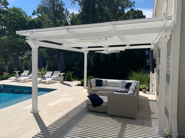 - Motorized Pergola – for on-demand shade and protection from rain and snow (even in high winds)