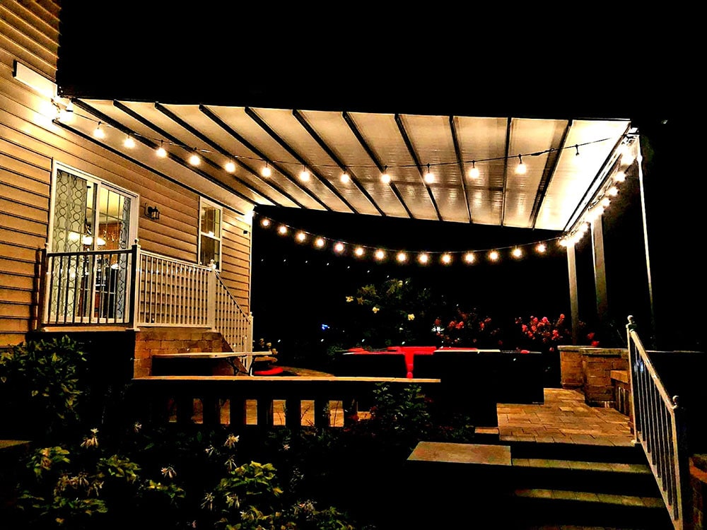 When you want more protection, keep the awning out. These homeowners decided to incorporate outdoor lighting so they could enjoy the patio at night. Another benefit of an awning? You can host a gathering without having to worry about the unpredictable weather.